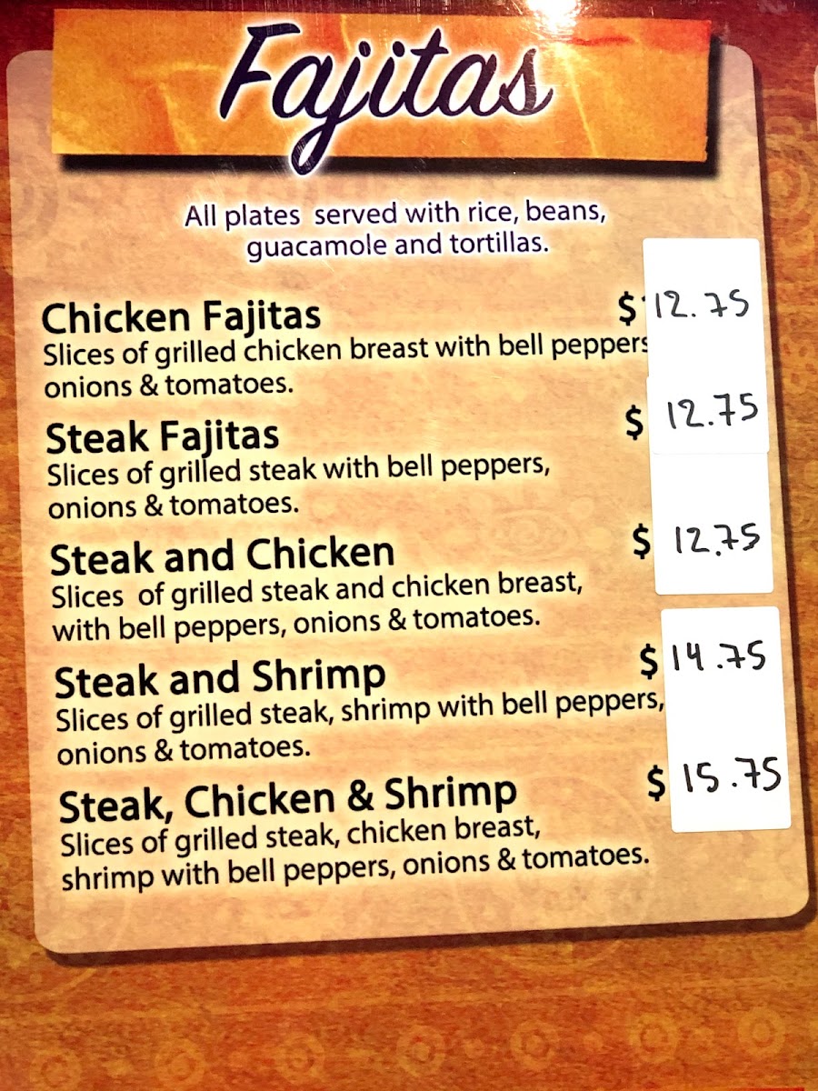Slices of steak and shrimp cooked with bell peppers, onions and tomatoes. Served with rice, beans, fresh guacamole and tortillas on the side.