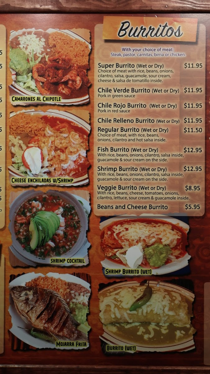 - Burritos: From Shrimp to Chile Rojo, each burrito is crafted with care and served hearty at affordable prices.